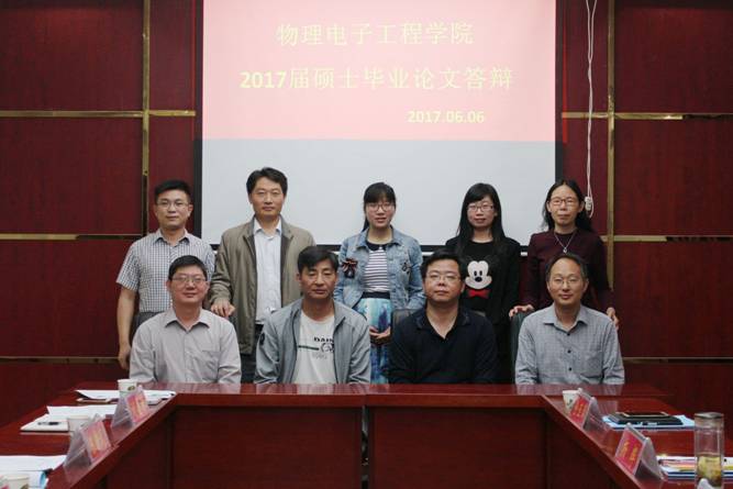 66日,公司在物理楼南楼501会议室举行2017届专业学位和学术型硕士研究生毕业论文第三批答辩会。本次答辩委员会主席是信阳市高级中学高级教师左刚武,委员有信阳市基础教研室高级教师杨辉、公司陈新武教授、冯一兵副教授、仓玉萍博士、龚克博士、刘墨林博士。