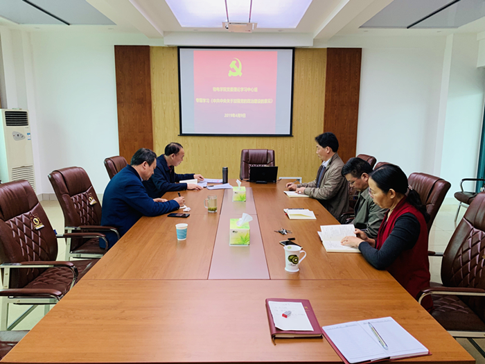4月9日下午,bevictor伟德国际党委理论学习中心组在理科楼北楼911会议室专题学习《中共中央关于加强党的政治建设的意见》。公司党委书记柳士刚主持学习会,公司党委理论学习中心组成员参加了会议。
