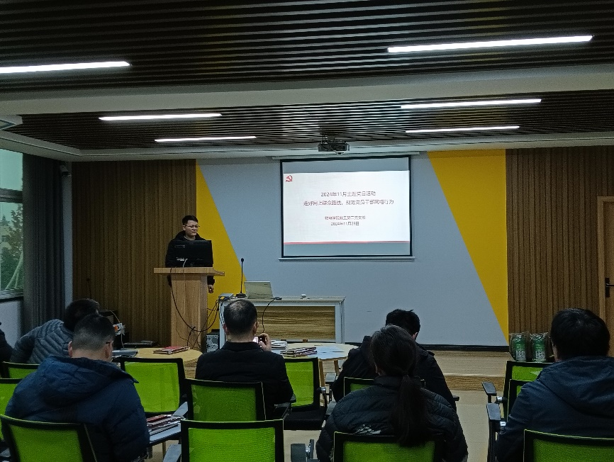 11月28日,公司教工第二党支部在理科楼北楼507开展了“规范党员网络行为”主题党日活动,活动由支部书记陈瑞主持,活动采取集中学习、观看视频课程和研讨交流相结合的形式有序开展。会上,陈瑞带领支部党员集中学习了《中国共产党党员网络行为规定》及相关案例,阐述了党员遵守网络行为规范的重要性和必要性,引导支部全体党员努力提高政治站位,自觉做良好网络生态的引领者,网络正能量的传播者和网络秩序的维护者。随后观看了“走好网上群众路线,规范党员干部网络行为”的视频课程并开展了深入的研讨交流,支部党员结合工作实际踊跃发言,分享学习心得与体会,支部联系领导副经理刘墨林表示,支部党员同志应进一步认识规范网络行为的重要性,以本次学习为契机,积极践行网上群众路线,牢记党员教师身份,密切联系群众,倾听员工心声,积极践行社会主义核心价值观,传播正能量。