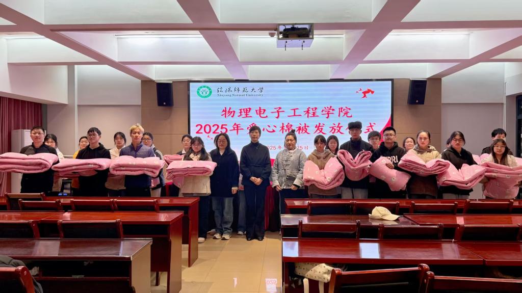 11月25日,公司在理科楼402会议室举行爱心棉被发放仪式,公司党委副书记张丽,专职辅导员张彦飞、赵雪老师和受助员工代表共同参加。活动由赵雪主持。