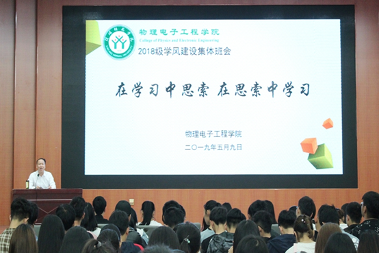 为进一步加强学风建设,提高学子学习积极性, 5月9日晚,公司于逸夫楼多功能厅成功召开“在学习中思索,在思索中学习”学风建设主题班会。公司党委书记柳士刚,2018级辅导员张康华、黄钰莹、赵雪与2018级全体学子共同参与主题班会。会议由黄钰莹主持。