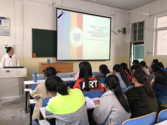 为了改善广大学子的学习生活质量,扎实推进精准扶贫工作,bevictor伟德国际于9月14日中午在教三楼302多媒体教室成功召开了2018级新生家庭经济困难员工资助政策宣传教育会。资助专员赵雪担任宣讲会主讲,2018级全体新生共同聆听。