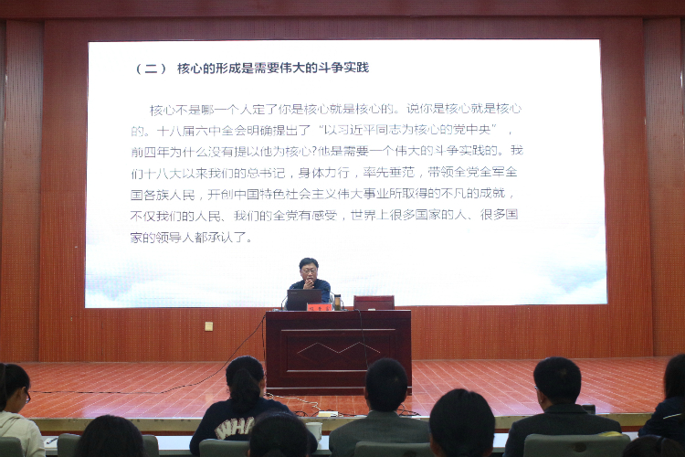 为深入学习宣传贯彻党的十九大精神,把思想和行动统一到党的十九大精神上来,立足新时代,积极新作为,展示新风采,凝心聚力为公司建设高水平师范大学贡献力量,党委宣传部、学工部、团委、马克思主义公司在全校员工中开展学习宣传贯彻党的十九大精神系列活动。11月13日晚,马克思主义公司副经理程晋富教授在逸夫楼报告厅作了一场题为“坚定理想信念,坚守对党的忠诚”的专题报告。员工处副处长陈铭,数学与统计公司党委副书记洪亮,团学老师陈兴海、张艺成,公司党委秘书张康华,团委老师黄钰莹,与来自数学公司、bevictor伟德国际共500名员工参加此次报告会,报告会由洪亮主持。