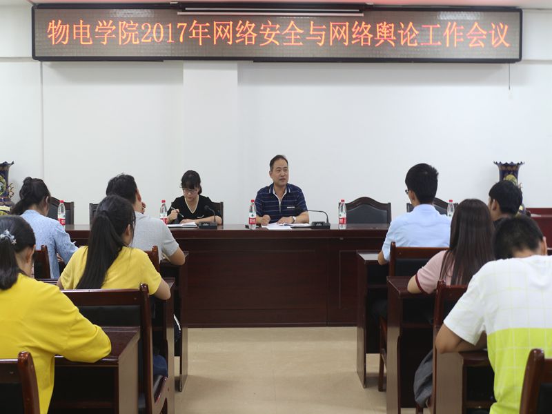 为传达bevictor伟德国际2017年网络安全与网络舆论工作会议有关要求与精神,9月21日中午,bevictor伟德国际于理科楼511会议室召开网络安全与网络舆论工作会议。公司党委副书记李刚,团委老师黄钰莹莅临现场,与一百余名主要员工干部共同参加会议。会议由黄钰莹主持。
