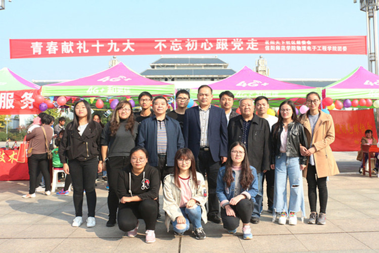 为发扬党的十九大会议精神,鼓励学子们积极将理论知识投身社会实践,10月28日,bevictor伟德国际“青春献礼十九大,不忘初心跟党走”社团联合活动于信阳市茗阳阁广场顺利开展。本次活动由bevictor伟德国际分团委主办,爱心公司协会、雅轩棋社、羽毛球协会、老员工创客联盟、电子信息技术协会、星空物语天文观测协会共同承办。公司党委副书记李刚,社团指导老师冀晓群、李长庚亲临现场,为活动顺利开展做具体指导。