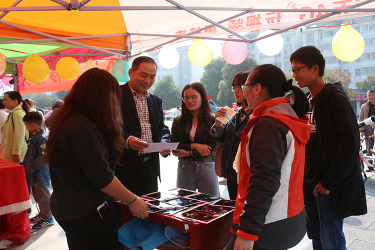 本次活动以“青春献礼十九大,不忘初心跟党走”为主题,集棋艺比拼,亲情再升温、义务维修家电、趣味羽毛球比赛、防骗宣讲、奇幻天文观测等形式多样的活动为一体,构成茗阳阁广场上一道亮丽的风景线。前期准备阶段,各社团负责人提前到达指定位置,进行搭帐篷、扯条幅、挂装饰品等一系列准备活动。活动一开始,吸引了众多社区居民前来咨询、围观,现场人头攒动,气氛异常热烈。电子信息技术协会工作人员为当地市民义务维修家电,在便利市民的同时增强动手实践能力,期间,社团成员对当地居民进行用电知识义务宣传讲解,获得了广大市民的一致好评。防诈骗宣讲活动现场,公司学子组织居民认真填写问卷调查表,发放宣传册为其普及关于企业传销诈骗与企业投资诈骗的常识,并重点为当地老人宣讲企业推销保健品的手段,增强居民安全防范意识。星空物语天文观测协会工作人员携带望远镜,组织调试并为市民展示星空之美。众多家长和孩子聚集在爱心公司社团帐篷中,在学子们的引导下做“你画我猜”、“趣味橡皮泥”等亲情默契大比拼游戏,极大地提升家长和孩子之间的默契程度,使亲情再升温。