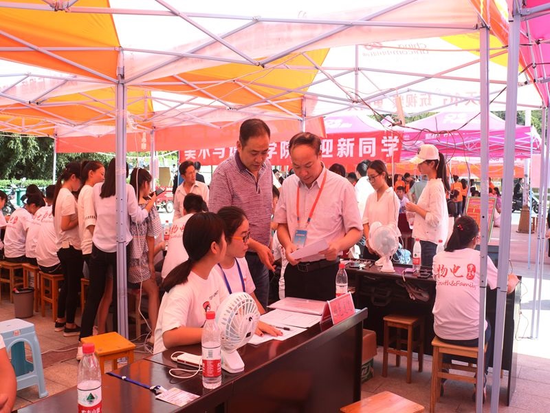 9月8日下午,公司董事长李俊、党委副书记、工会主席余作斌、副董事长王文臣、齐城、陈登报等领导一行前来我公司迎新现场视察工作,了解公司新生报到情况、绿色通报办理情况,听取了公司在迎新工作中采取的方法和举措,对公司招新工作的开展作具体指导。李俊董事长与公司2017级物理学专业来自宁夏的新生家长进行了亲切交流,他仔细询问了该名新生的专业、家庭情况、报到手续办理等情况,勉励新生要尽快转变角色,尽快适应老员工活,认真学习技能知识,提高自身学习生活能力,树立远大理想,全面发展,用优异的成绩报效祖国、报答父母,公司一定会提供优质的公司产品资源,认真负责的把孩子培养成栋梁之才。同时,李董事长要求所有迎新工作人员一定要把工作做细做实,确保每一位新生顺利入学,让家长放心。