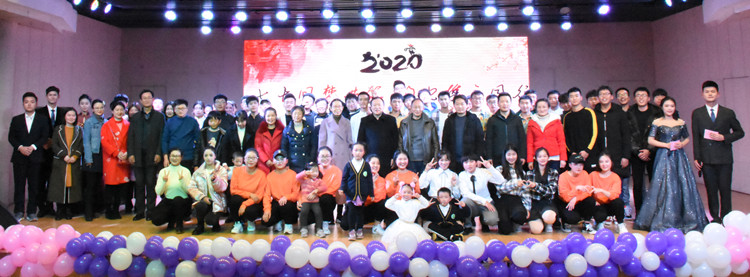 柳士刚、涂友超通过MV的形式为元旦晚会致辞,总结在即将过去的一年公司取得的各项成就,展望2020年再创辉煌,并向在场师生表达了真挚的新年祝福。晚会分为“冬夜舞韶华”和“青春待明朝”两个篇章,汇集舞蹈、歌曲、武术、小品、相声多种表演形式于一体,为现场观众带来一场精彩绝伦的视听盛宴。晚会在动感炫酷的开场舞《SHAKE IT》中拉开序幕,震撼人心的音乐、洋溢着青春活力的舞姿、积极向上的青春气质感染着在场师生。武术表演《棍影乾坤》将博大精深的传统中华武术与时尚新潮的现代音乐舞蹈融合,尽显中华武术之美。小品《你的模样》《手机综合症》《安全演习》连番上演,其主题以小见大,情节引人入胜,表演中暗含人间真情、世间真理,完美诠释喜剧的真正含义,告诉学子们要立足当下、砥砺前行,在奋斗中绽放青春光芒。《你的答案》《想要唱歌给你听》等一首首流行歌曲瞬间点燃观众的热情。相声《满腹经纶》语言特色鲜明,意蕴丰富深刻,将中西方文化完美结合,以幽默诙谐的语言强调文化的重要性,令人捧腹之余,引人深思。晚会在2019级班团带来的歌舞串烧《辣舞小天使》中落下帷幕,整场晚会激情四溢、高潮迭起,期间穿插抽奖环节,充分调动了现场气氛。晚会结束后,全体领导老师、演员及工作人员一同合影留念。