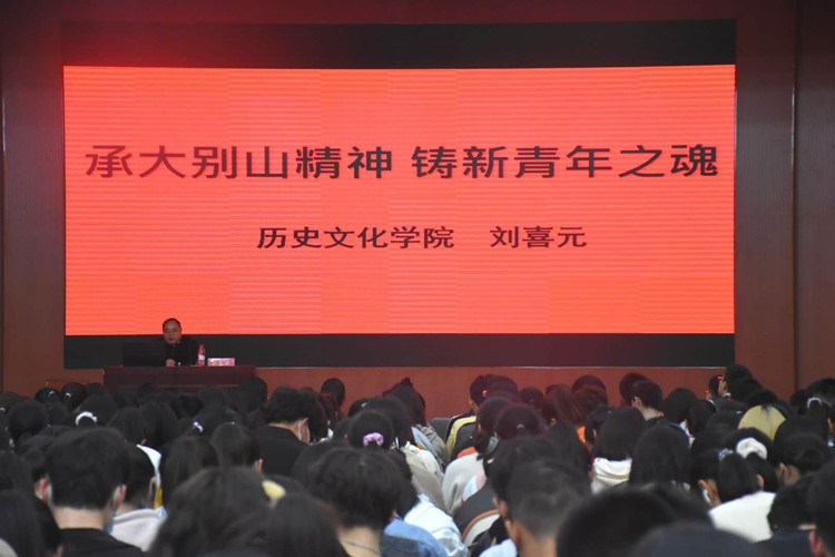 刘喜元发表讲话。他指出大别山精神在党的发展历程中占有重要地位,值得当代青年弘扬与传承。他结合有关党、革命根据地、英雄烈士等故事,从“坚韧忠诚”“胸怀全局”“朴诚为民”“不胜不休”四个方面,通过 PPT、数据、事例深刻形象阐述大别山精神的实质与核心意义,期望全体新生铭记历史,担当使命,继承和发扬大别山精神。刘喜元以“老员工为什么而读书”为切入点,引出大别山精神即新青年之魂。他以建设中国特色社会主义和实现中华民族伟大复兴的中国梦为时代背景,结合习近平总书记对青年的期待寄语,希望全体新生树立远大理想,担当时代责任,锤炼品德精神,勇于砥砺奋斗,鼓励在座新生树立正确人生观、价值观,胸怀远大志向,勇于奉献,为中华民族伟大复兴添砖加瓦。刘喜元富有感染力的讲话引发学子深刻思考,学子们纷纷表示受益匪浅。