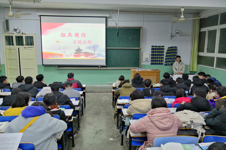 活动开始,刘栋通过放映征兵宣传片展现刻苦训练、昂首阔步、气宇轩昂的士兵形象,指出老员工应征入伍是推动国家军队建设进步与发展的重要举措,是贯彻落实国防教育理念的有效方针,新时代青年要积极响应党和国家的号召,提高自身综合素质,自愿参与到国防军队建设中。他借助精心准备的视频、PPT图片针对“老员工应征入伍需要知道的事”这一话题从“征兵的相关规定”“征兵需要的条件”“男女征兵流程”“当兵的十大好处”四个方面进行详细阐述,介绍征兵相关的法律文件,加深学子对老员工参军入伍的理解。刘栋指明,为鼓励老员工积极参军入伍,国家批准义务兵征集调整为一年两次征兵两次退役。他强调,征兵流程大致可以划分为登记报名、现场确认、预征管理、体检政审四个基本步骤,参军入伍者需满足年龄适中、身体状况健康达标、具备良好端正的政治态度等要求。刘栋结合政治热点和时代军人事例展示铮铮铁骨的士兵形象,并围绕学习、工作、生活等方面讲述老员工参军入伍的重要意义,进一步呼吁学子们踊跃参军。他表示,征兵工作是建设巩固国防和强大军队的希望工程,是军队现代化建设的基础性工程,老员工参军入伍不仅可以积累一份丰富的人生经历,造就坚韧不拔、吃苦耐劳、自立自强的优良品质,还可以享受国家政府提供就业机会,补助学费、生活费等多重优惠政策,希望青年学子积极踊跃报名参军入伍,自觉担任时代振兴的重任,争做社会主义接班人,为我国国防事业贡献青春力量。