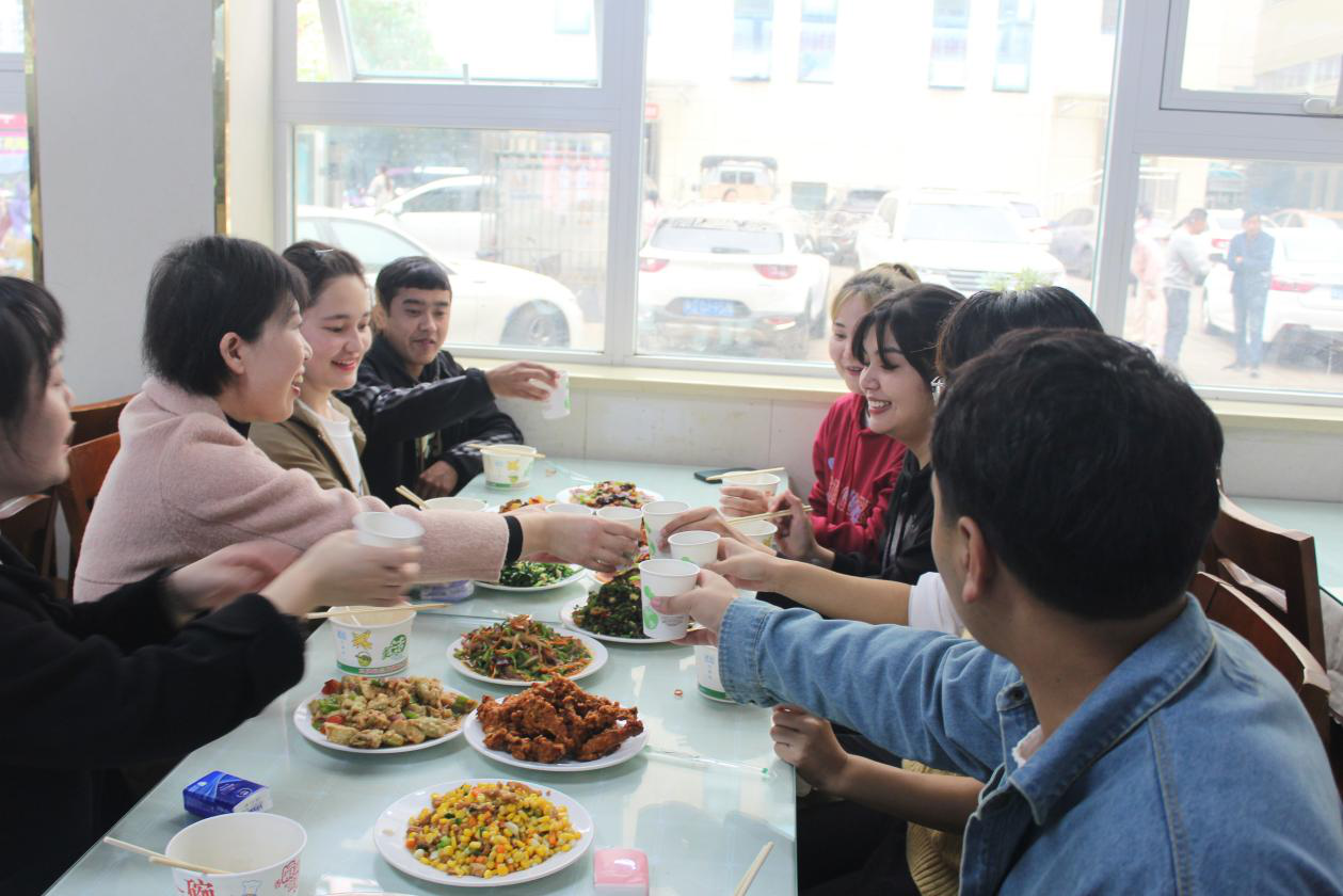 张丽、丁雪玲老师与少数民族新生们围着餐桌,边吃边聊,张丽饶有兴趣和同学们拉起家常,全面了解同学们对学业、老员工活规划、人生方向等方面的真实想法。少数民族学子们各自汇报自己入学以来对老员工活的感想,提出对未来学习生活上的规划,表示一定会遵守校规校纪,与同学们和睦相处。内派老师丁雪玲对公司少数民族工作表示肯定,鼓励少数民族新生们继续保持积极状态,在新的一年里取得更优异的成绩。