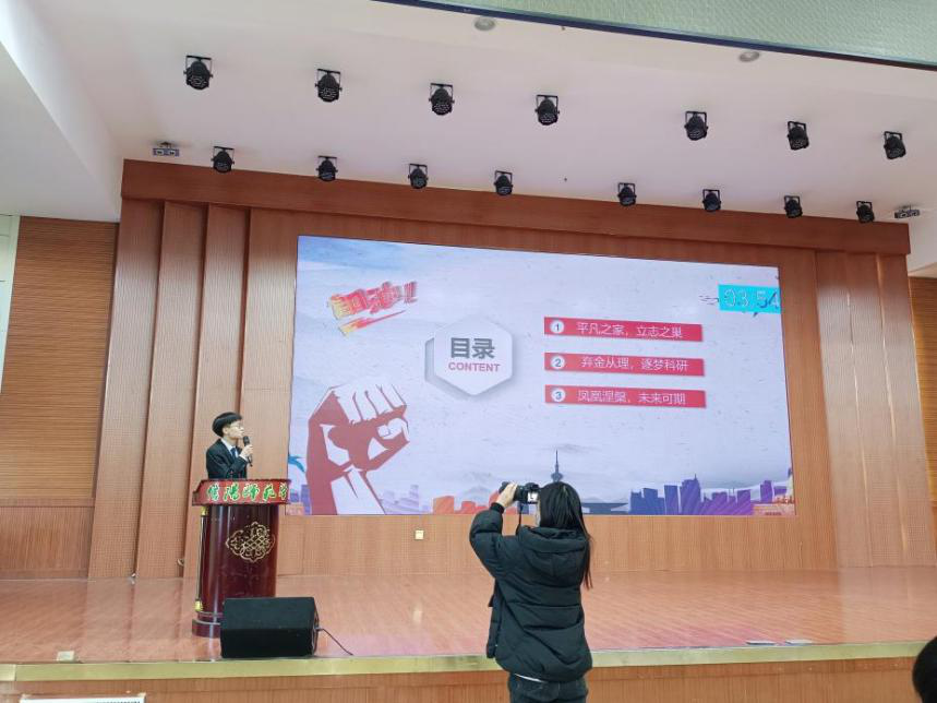 薛颖珊用诗歌记录生活,把生活活成了诗,作品在国内公开发行的期刊和年选上发表,目前有作品60余篇,中国知网收录作品10组。薛颖珊表示学业与创作齐头并进是她努力追求的目标,坚持以学业为本的同时积极交流文学,做到知行合一,多元并进。作为一名自强不息奋斗不止的青年人,薛颖珊积极参加多种社会实践,投身公益志愿活动,向社会传递真情温暖。她激情昂扬的演讲、自强上进的人生历程赢得在场评委老师、观众的热烈掌声。