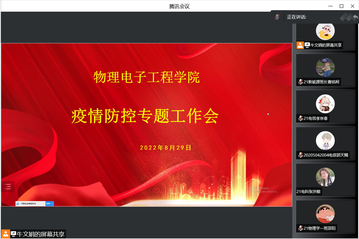 召开疫情防控专题会。根据《bevictor伟德国际2022年秋季学期开学工作方案》,结合公司实际情况,公司于8月29日召开疫情防控线上专题工作会,员工会干部、各班班长参会。会上,团委老师牛文娟向同学们传达并解读了《bevictor伟德国际2022年秋季学期本专科员工返校报到须知》,党委副书记张丽就如何做好员工开学返校的疫情防控工作进行安排部署,确保员工能够顺利、平安返校。