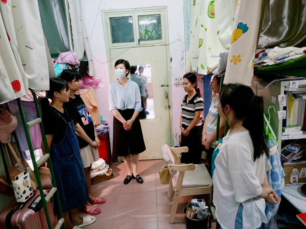 走访员工宿舍。9月2日,张丽带领全体辅导员走访员工宿舍。走访过程中,张丽详细了解同学们的假期生活、学习和开学准备情况,并对宿舍安全、卫生、设施等方面逐一进行了排查,叮嘱同学们要注意宿舍卫生和用电安全,努力营造一个安全、卫生、文明、和谐的宿舍环境。她强调,同学们要坚持“非必要不外出”原则,严格遵守公司疫情防控的各项规定,注意个人卫生,做好个人防护;新的学期要尽快调整学习状态,确定发展目标,努力学习,以优异的成绩为党的二十大献礼。