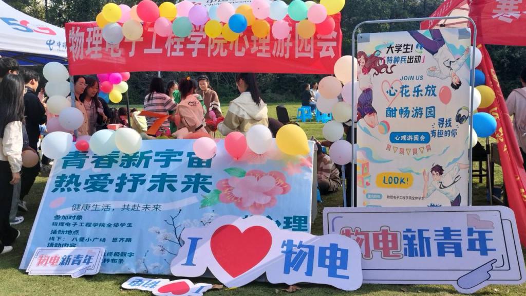 参与心理游园会的同学络绎不绝,同学们在游戏中释放心理压力,忘却心中烦恼。