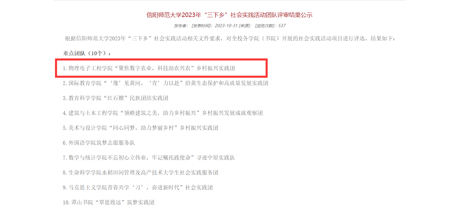 近日,伟德国际唯一官网2023年“三下乡”社会实践活动评审会公布评审结果,公司的“聚焦数字农业,科技助农兴农”乡村振兴实践团被评为重点团队。