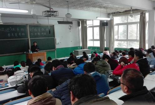 李东亮结合自身多年的教学经验和工作经历,重点就当前师范生普遍关注或关心的:如何备考中学招教、怎样尽快适应新教师岗位、如何备课和上课等进行了较详细地介绍和阐释,随后,简要分析了当前中学教师的工作状况以及漯河三中的基本情况,最后,谈了自己对教师职业的理解和感受等。