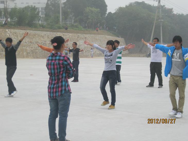 自接到广播体操比赛的通知以来,公司领导高度重视。新生辅导员刘华超在员工会成员的协助下制定了详细的训练计划。从9月25日起,每天清晨6:10分,公司大一新生集中在东操场内学习和训练第二套广播体操。负责训练大一新生的成员,都是由该院领导精心挑选出来的,这些训练员在去年比赛中都拿到了非常好的成绩。在这次备战训练中她们更是认真负责,她们将连贯动作分解,并耐心地讲解每一个动作,然后一遍一遍地给公司新生做示范。大一新生们非常积极地参加训练,虽然军训刚刚结束,但是对早起训练没有丝毫抱怨,遇到不会的动作虚心地向训练员请教,并且,在正常的训练时间以外,各班同学根据实际情况,尽量抽时间加训。在训练中,同学们耐心地改正每一个不足之处,努力把每一个简单细微的动作做到位。经过一遍又一遍的练习,同学们的动作变得整齐划一,铿锵有力。整齐的队列、饱满的激情、有力的口号充分展现了公司学子积极向上,不怕困难的精神风貌。