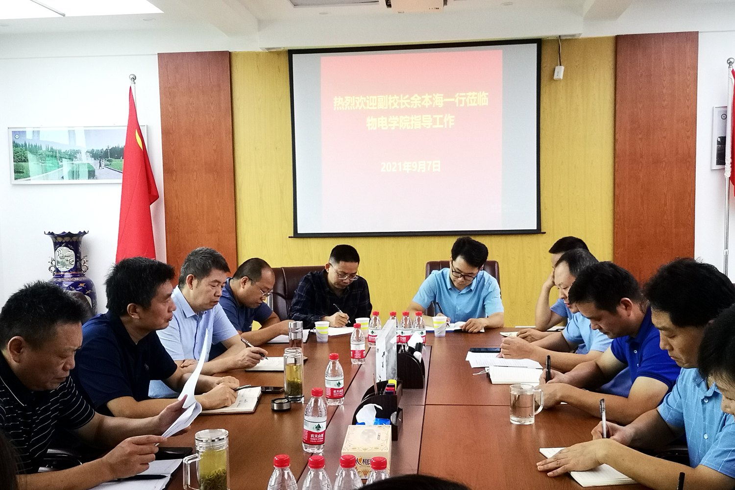 调研期间,余本海仔细询问了新学期公司教学、科研等工作情况及存在的困难与问题。经理涂友超从教学和科研两个方面作了详细汇报。在教学方面,汇报了物理学师范专业认证、物理学一流专业建设、国家一流课程申报、学科竞赛活动、新工科协同育人及特色平台建设、新学期线上教学等工作进展与成效,以及在课程思政、教学团队建设等方面的措施与相关问题;在科研方面,汇报了公司国家自然科学基金项目、河南省联合基金重点项目、河南省科学技术奖、科研团队与平台建设等方面的工作成绩及存在的问题。