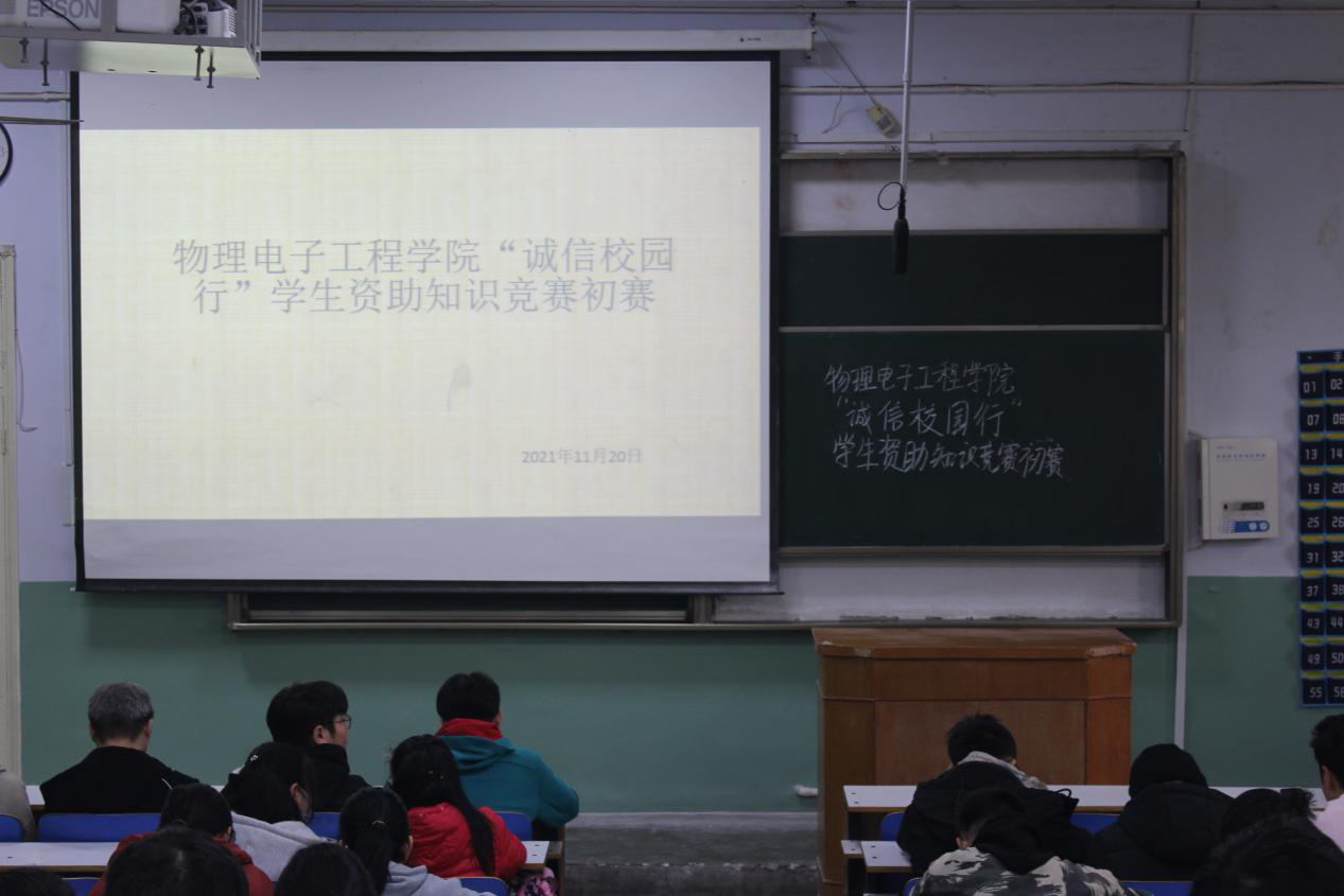 为拓宽2021级学子们的知识层面,11月20日,公司于教二梯四开展“诚信校园行”员工资助知识竞赛初赛,秘书处成员以及各位参赛选手参加此次活动。活动由曹旭主持。