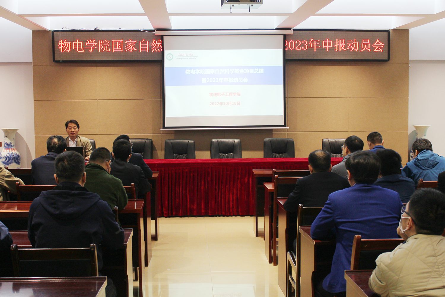 为加强国家自然科学基金项目管理、积极推动2023年申报工作,10月18日公司在理科楼四楼会议室召开了“国家自然科学基金项目总结暨2023年申报动员会”。公司党委书记刘百超、经理涂友超、副经理龚克、刘墨林、汤清彬出席会议。具有高级职称、博士及拟申报2023年国家自然科学基金项目的50余名教师参加了动员会。会议由龚克主持。