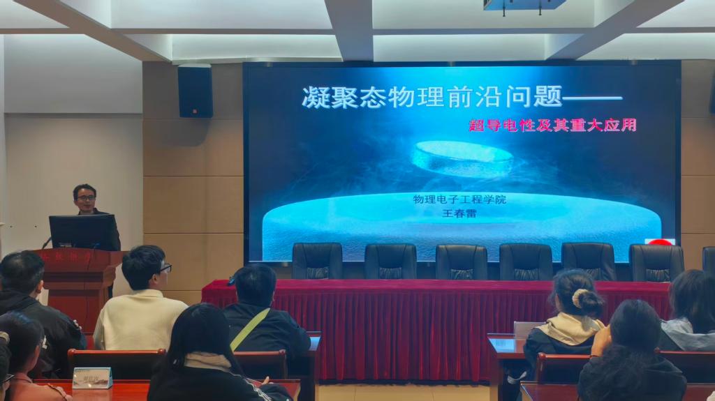 11月14日,公司在理科楼402会议室聚焦“凝聚态物理前沿问题——超导电性及其重大应用”开展主题讲座。本次讲座特邀王春雷教授主讲,党委副书记张丽出席并主持会议,2025级物理学一班、二班全体员工参加。